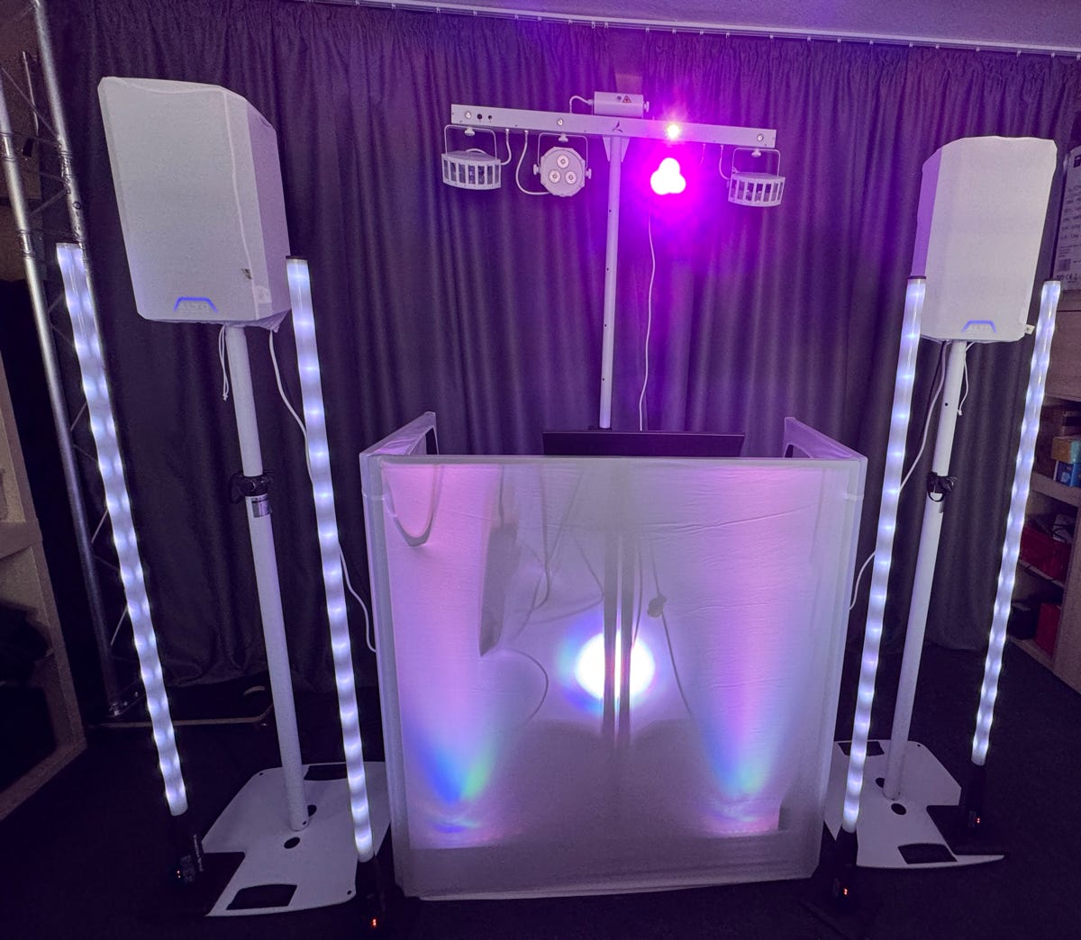 Für Ihre Hochzeit, Gala oder Feier kann Licht- und Tontechnik in weißer Farbe angeboten werden!